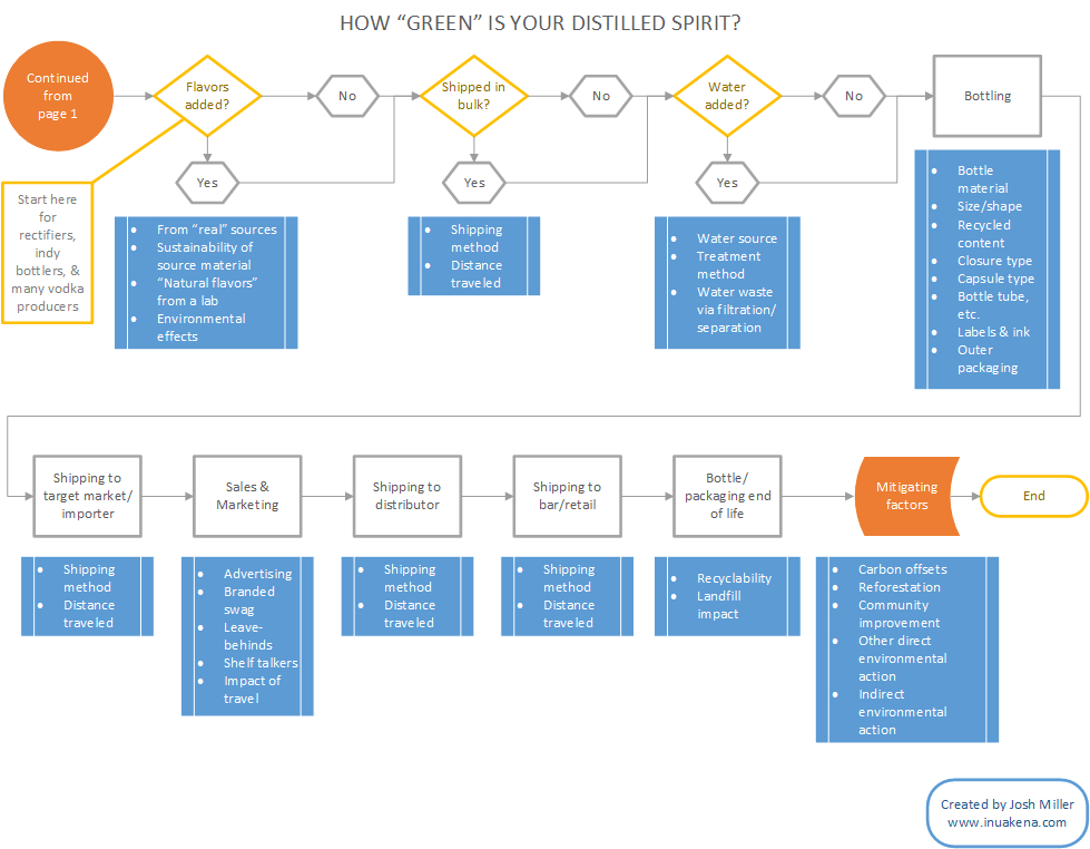 In the two images below, I’ve attempted to capture the relevant production steps where decisions are made that affect the environment. I have likely missed a few things in my haste, so please add your comments below, and I will release an edited version at a later date. Despite any omissions, the flow sheets should nevertheless help folks visualize the steps in the process of getting booze from the field to the barstool, and provide some food for thought.