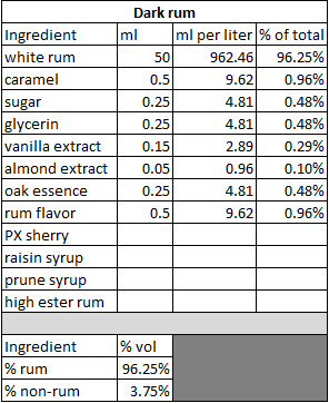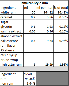 9. High ester rum: a little high ester Jamaican rum can go a long way to making a neutral spirit taste like legitimate rum.